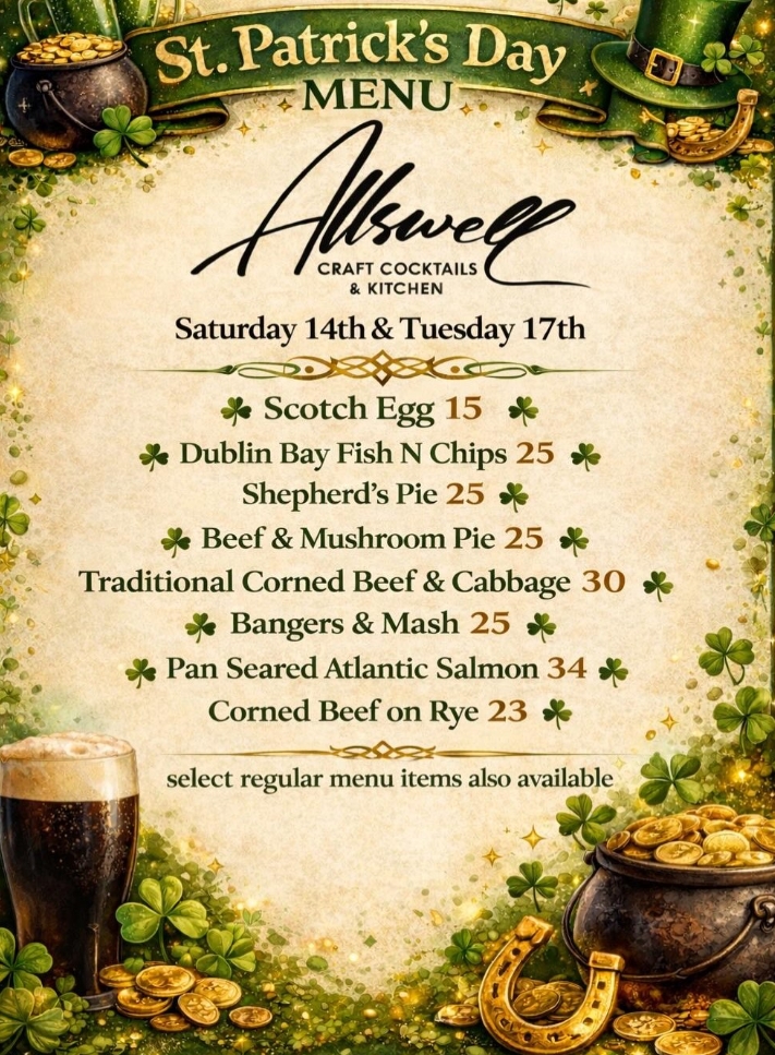 Celebrate St. Patrick’s Day the Allswell way with a full day of Irish-inspired food, festive drinks, and live entertainment. Gather your friends and enjoy the lively atmosphere as Allswell brings the spirit of Ireland to Waterside Place.