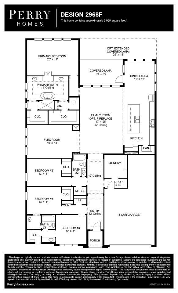 The front porch opens in an entryway lined with a 12-foot tray ceiling. Off the main hallway are two secondary bedrooms which feature their own walk-in closets and an adjoining Hollywood bathroom. Down the hall is an additional secondary bedroom with storage space and full bathroom access. Conveniently located across the hallway from the bedrooms is the laundry room. The flex room is just off the main living areas. As you enter the family room you are greeted by an abundance of natural light from the sliding glass doors and it features a fireplace. Hardwood floors throughout main living area. An island with built-in seating connects the space to the kitchen which features a walk-in pantry, and a 5-burner gas cooktop as well. The corner dining area is embraced by two walls of windows and allows access to the backyard extended covered lanai. The secluded primary bedroom offers a view of the backyard landscape with its wall of windows. Double doors lead into the primary bathroom which boasts dual vanities, a freestanding tub, glass enclosed shower, and two walk-in closets. The drop zone if off the three-car garage.