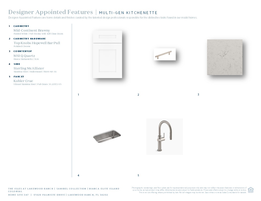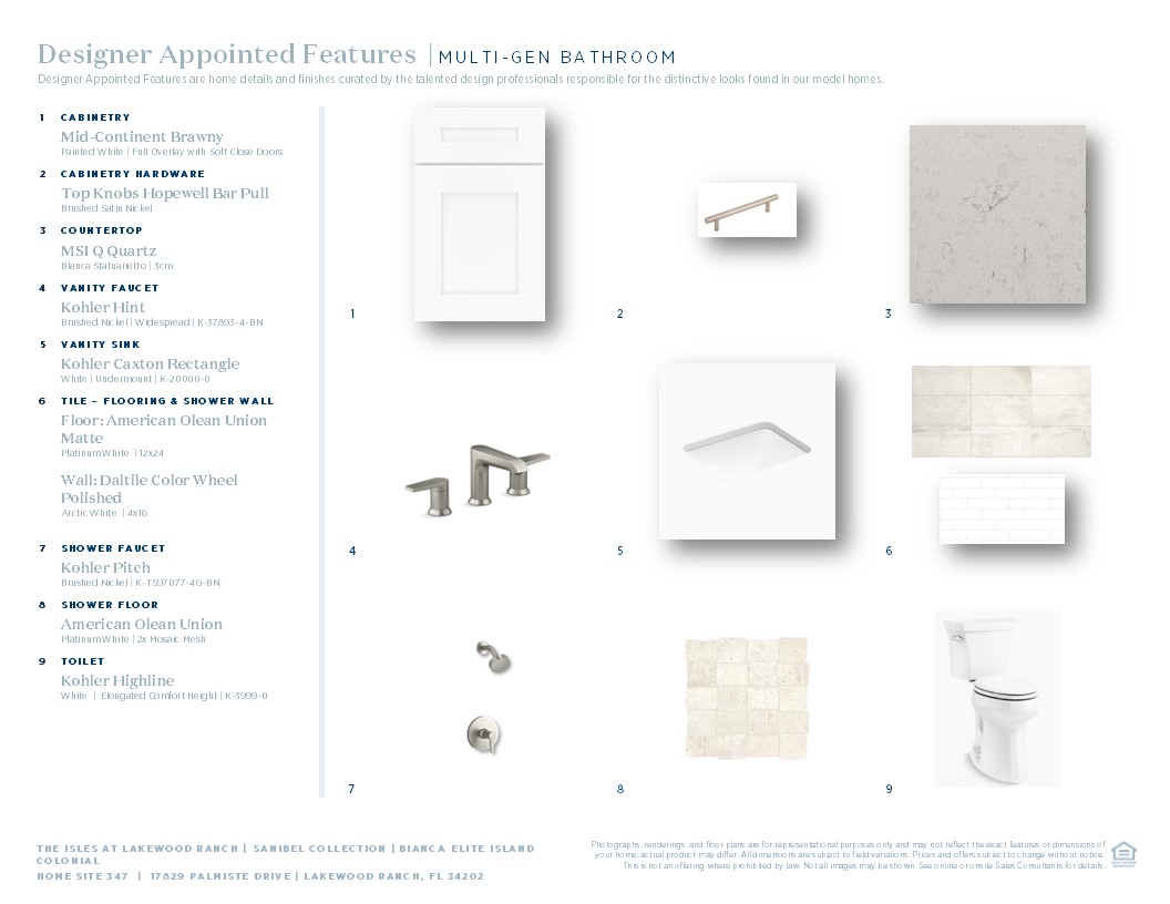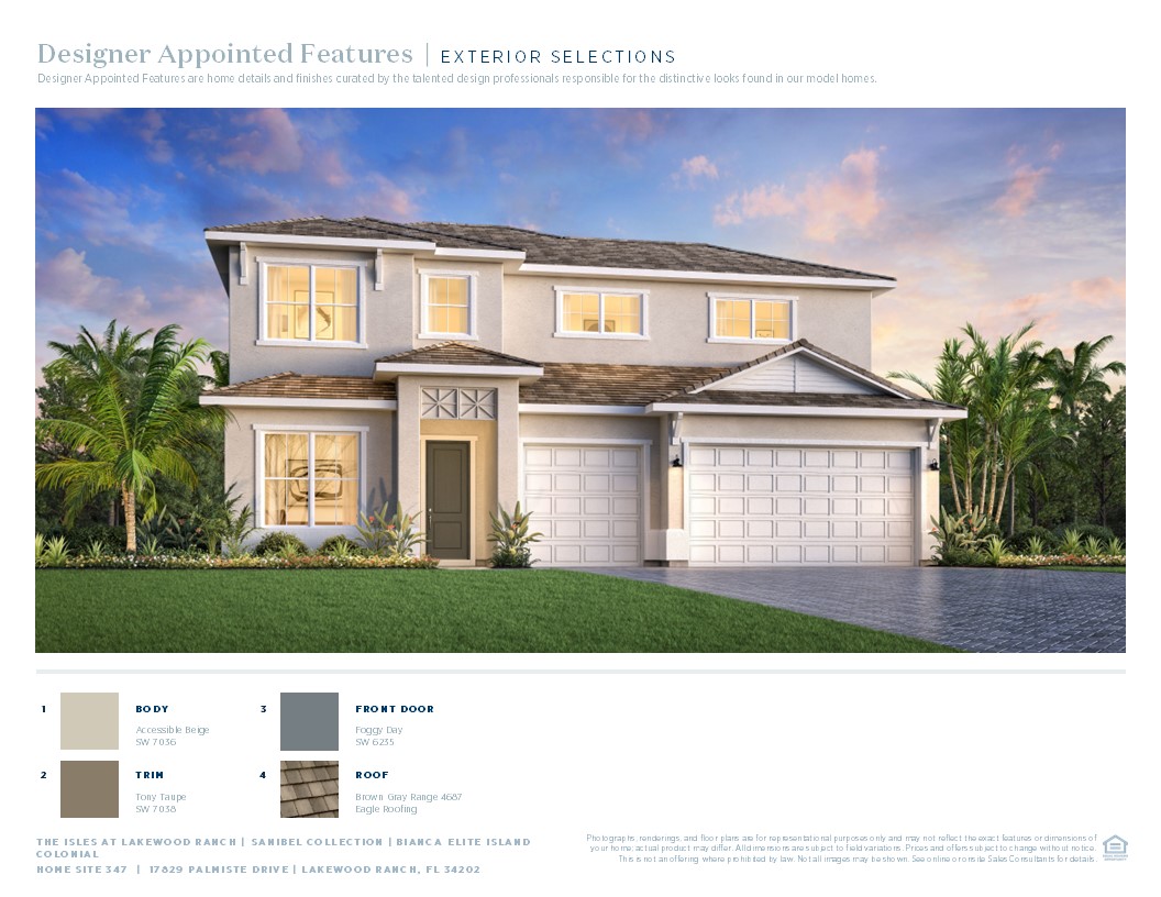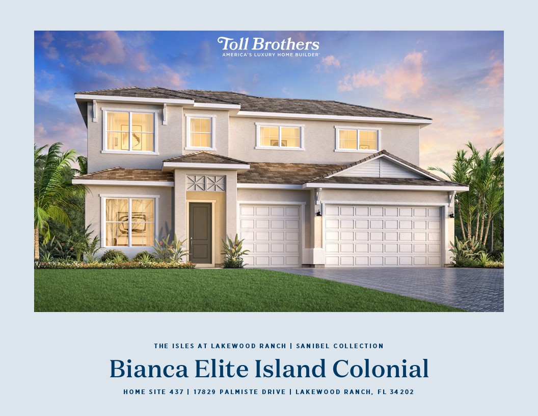The Bianca Elite features stunning gathering spaces and quiet retreats. A well-appointed multi-gen suite enhances the first floor, offering a private bedroom, full bath, and walk-in closet, along with an attached living area complete with a convenient kitchenette. The primary bedroom is a true retreat offering a classic tray ceiling, a generous walk-in closet, and a relaxing bath featuring a dual-sink vanity, an expansive glass-enclosed shower with a corner seat, a freestanding tub, and a private water closet. The beautiful kitchen is complete with a large center island with breakfast bar, generous counter and cabinet space, and a walk-in pantry. Adjacent, a casual dining room is filled with light from beautiful sliding doors leading to a tranquil covered lanai overlooking the water. Upstairs presents a spacious loft, two secondary bedrooms with large closets, and a full hall bath. Other desirable features include an everyday entry, a first-floor powder room and laundry area, and extra storage throughout.