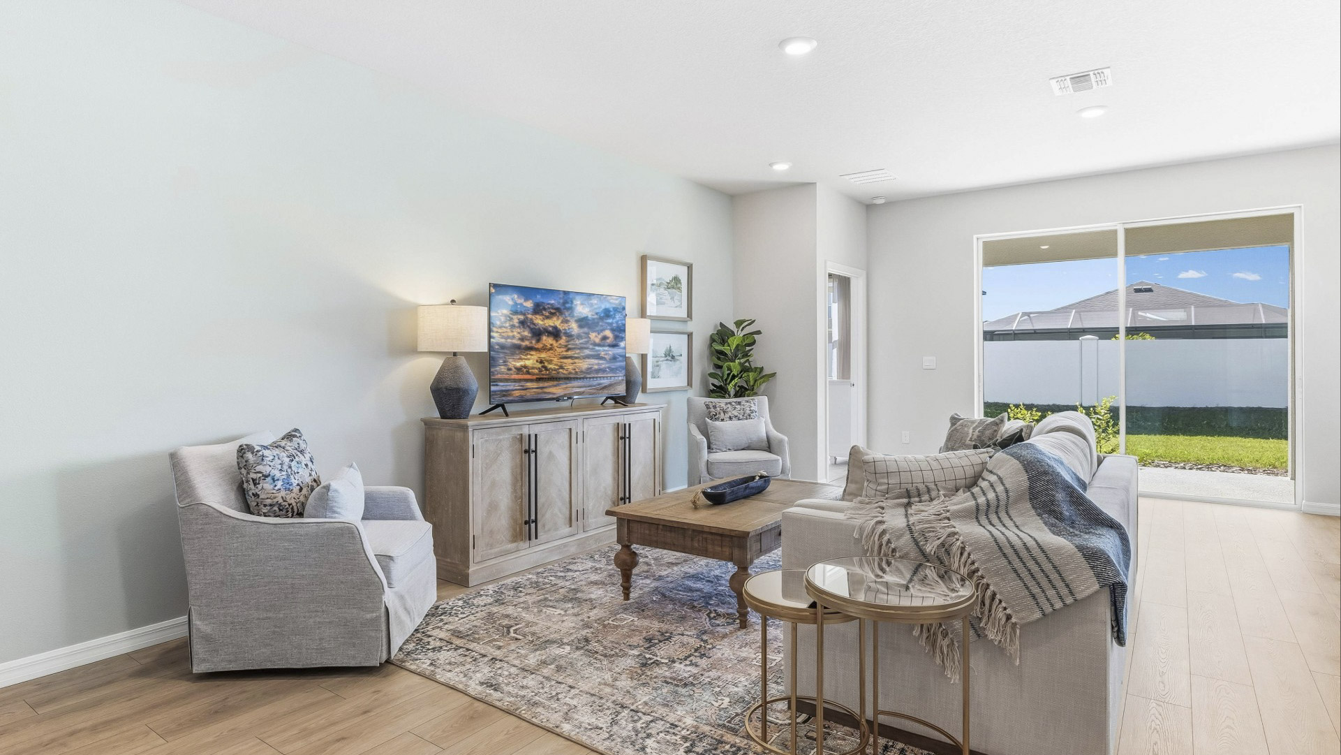 This all-concrete block constructed, one-story, two-car garage layout optimizes living space with an open concept kitchen that overlooks the great room, dining area, and oversized outdoor covered lanai. Bedroom 1, located at the back of the home for privacy, includes an ensuite bathroom that boasts an oversized shower. At the front of the home, two bedrooms share the second bathroom while the fourth bedroom is located near the laundry room. This home includes a stainless-steel electric range, microwave, and built-in dishwasher.