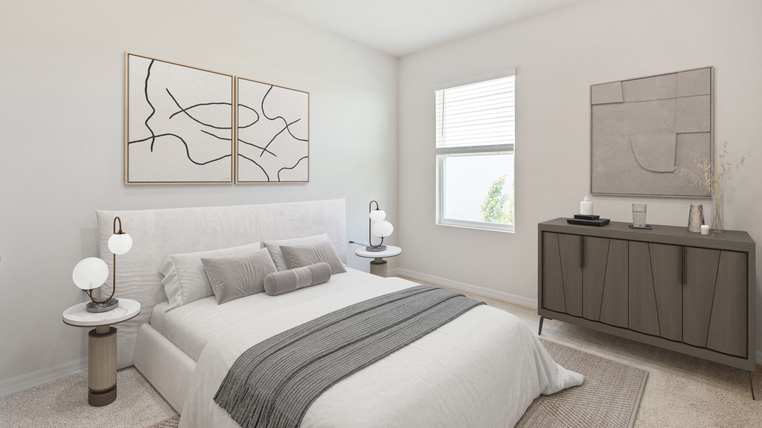 A front porch welcomes to you into one-story all concrete block construction home. Designed to optimizes living space with an open concept kitchen that overlooks the versatile great room and large covered lanai. The well-appointed kitchen features an island with bar seating, oversized walk-in pantry and sleek stainless-steel appliances! Bedroom one is located behind the kitchen and has an ensuite bathroom with double vanity and spacious walk-in closet providing substantial storage space. A second bedroom and bath are located at the rear of the home. Just off the great room is the versatile fourth bedroom, perfect to meet your needs. Like all D.R. Horton homes, the Harper includes a Home is Connected smart home technology package which allows you to control your home with your smart device while near or away. |