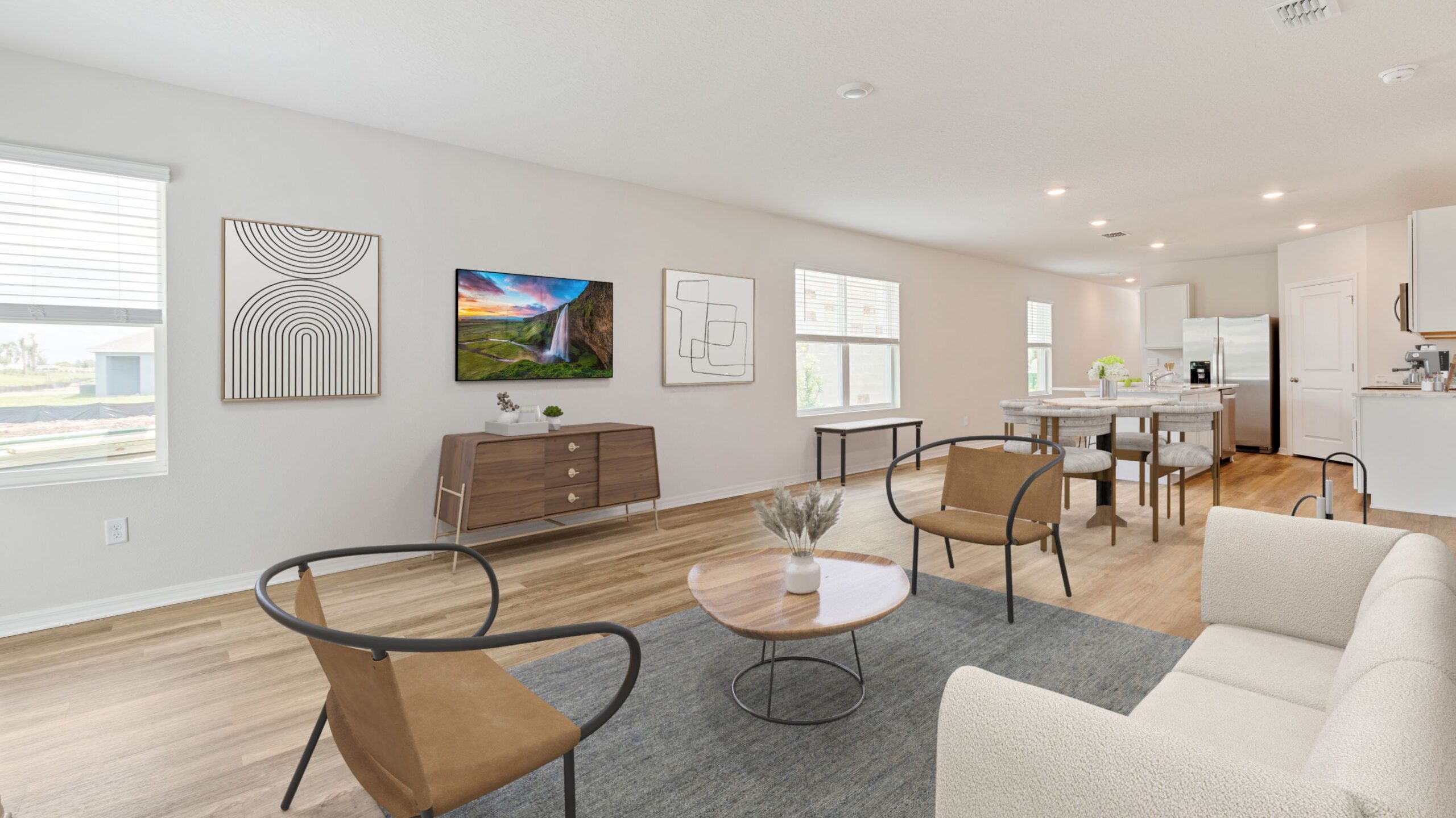 A front porch welcomes to you into one-story all concrete block construction home. Designed to optimizes living space with an open concept kitchen that overlooks the versatile great room and large covered lanai. The well-appointed kitchen features an island with bar seating, oversized walk-in pantry and sleek stainless-steel appliances! Bedroom one is located behind the kitchen and has an ensuite bathroom with double vanity and spacious walk-in closet providing substantial storage space. A second bedroom and bath are located at the rear of the home. Just off the great room is the versatile fourth bedroom, perfect to meet your needs. Like all D.R. Horton homes, the Harper includes a Home is Connected smart home technology package which allows you to control your home with your smart device while near or away.
