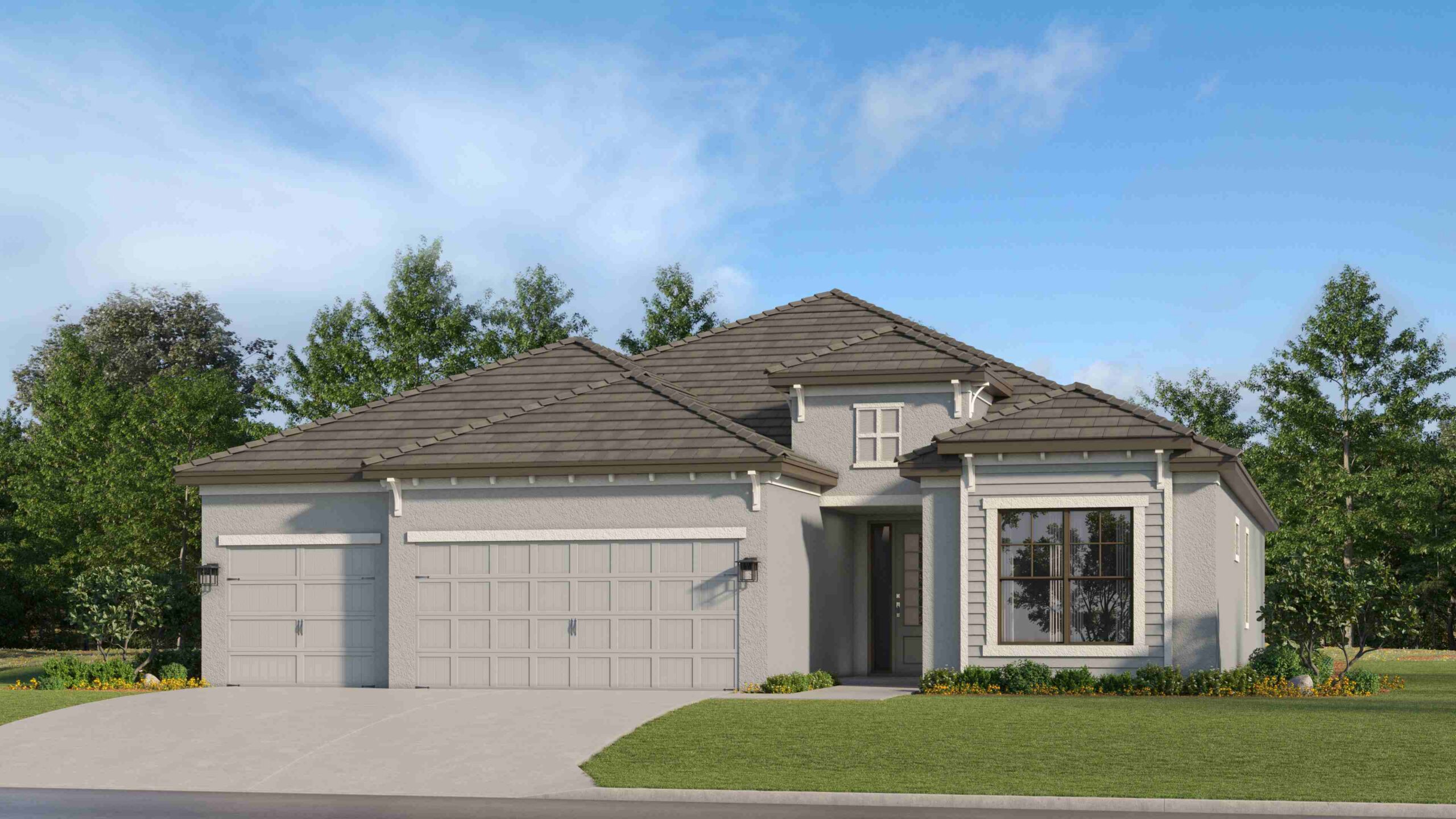 This spacious single-story home features a formal dining room with elegant arched doorways, followed by an open layout among the Great Room, kitchen and breakfast nook, with access to a covered lanai. In addition to the owner’s suite, are three secondary bedrooms and a three-car garage for versatile needs.