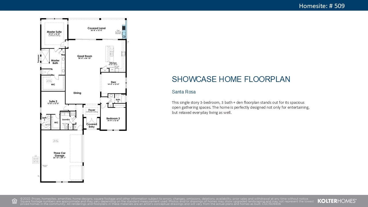 ***NEW CONSTRUCTION***Rendering used for reference* Step into the Santa Rosa, a spacious single-story floor plan offering 3 bedrooms, 3 bathrooms, a private den, and a 3-car garage. Through its double-door front entry, the home opens to an expansive gathering space filled with natural light from two large sliding glass doors. The rear kitchen layout is ideal for entertaining, featuring GE stainless steel appliances, quartz countertops, ample cabinetry, and a large island with seating for four. Luxury tile flooring extends through the main living areas, den, and primary suite.