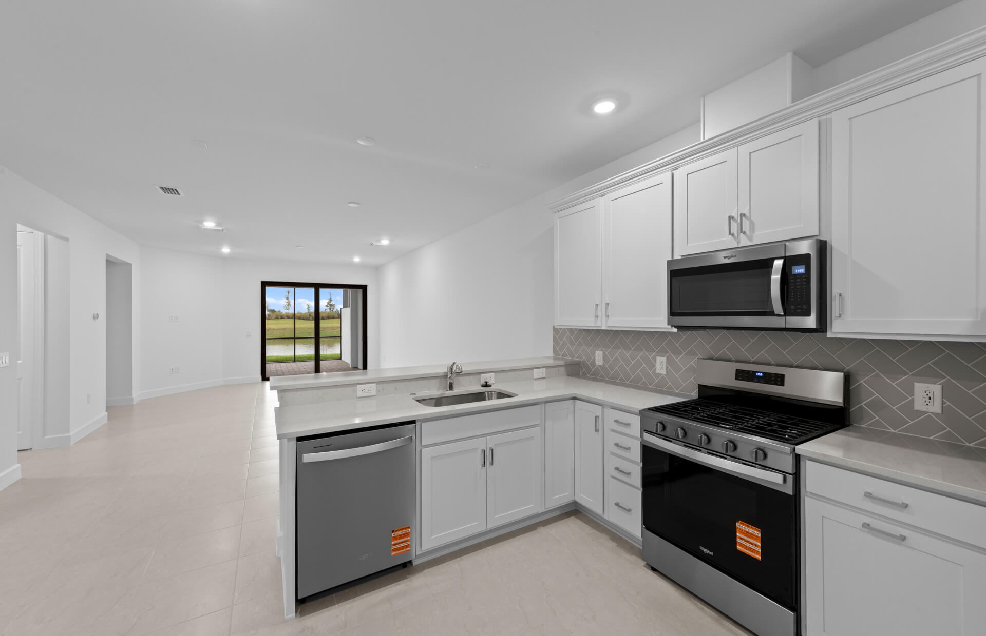 Step inside and you’re greeted by a bright, free‑flowing living space that feels instantly welcoming. The gathering room and cozy café nook open effortlessly into a beautifully designed kitchen, where sleek stainless steel appliances add a touch of modern polish without sacrificing comfort.