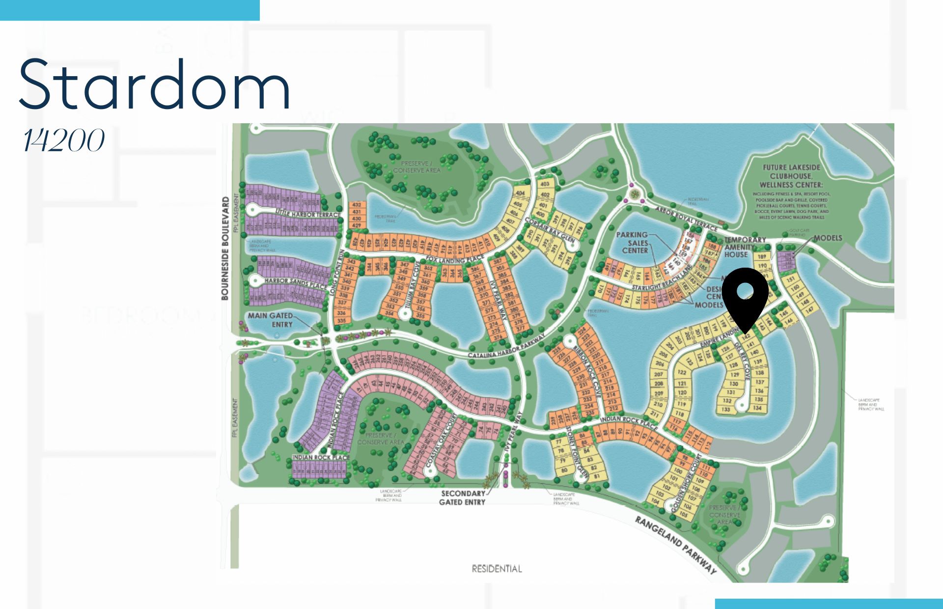 The new construction Stardom was made for entertaining with its spacious gathering room that opens to the kitchen, complete with oversized island, stainless appliances, walk-in pantry, and optional indoor-outdoor living options. Utilize the additional space in the garage for extra storage, or upgrade to a 3-car garage.
