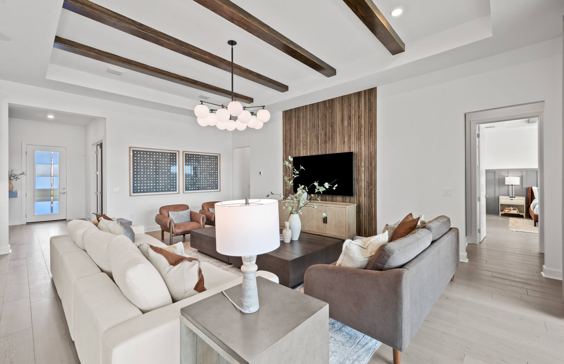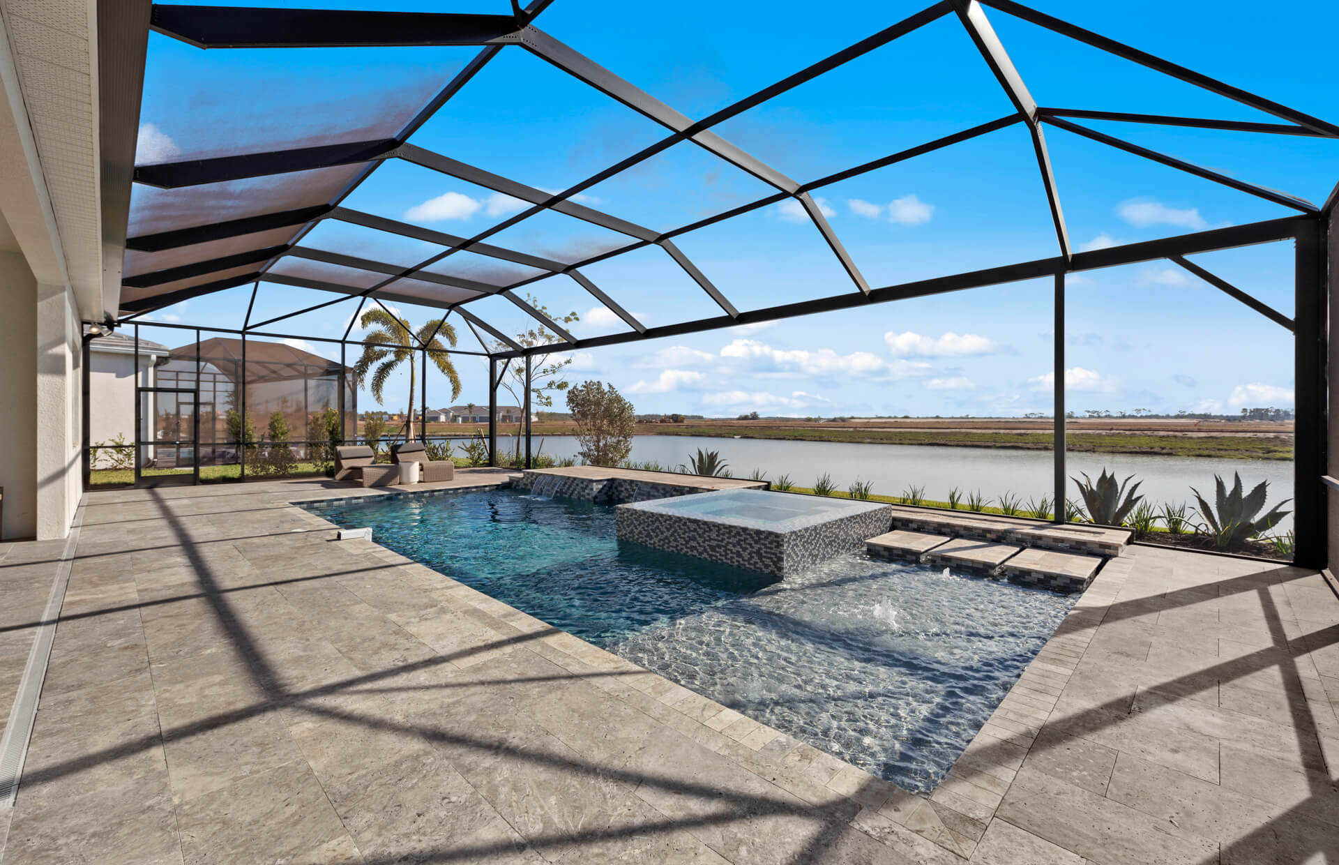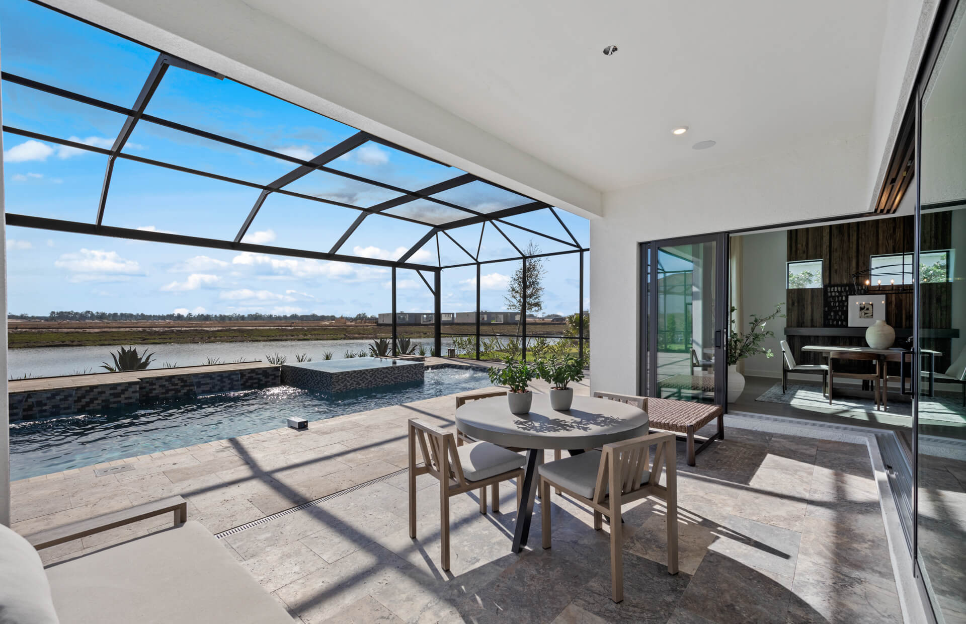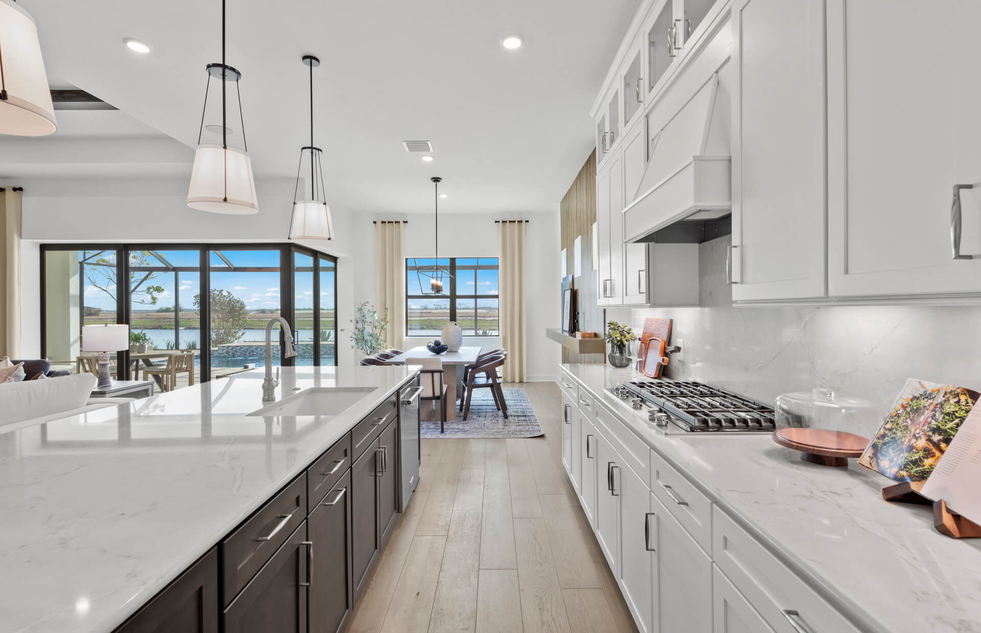The Stellar: a masterpiece of design, where entertaining and everyday living converge in perfect harmony. The chef-inspired kitchen seamlessly flows into the expansive gathering room, dining area, and inviting covered lanai, creating an ideal setting for memorable gatherings. Private retreats, like the versatile flex room and the luxurious Owner’s Suite with its palatial walk-in closet, offer serene moments of respite. A dedicated bay within the extended garage provides ample space for a golf cart or additional storage, catering to both leisure and practicality.
