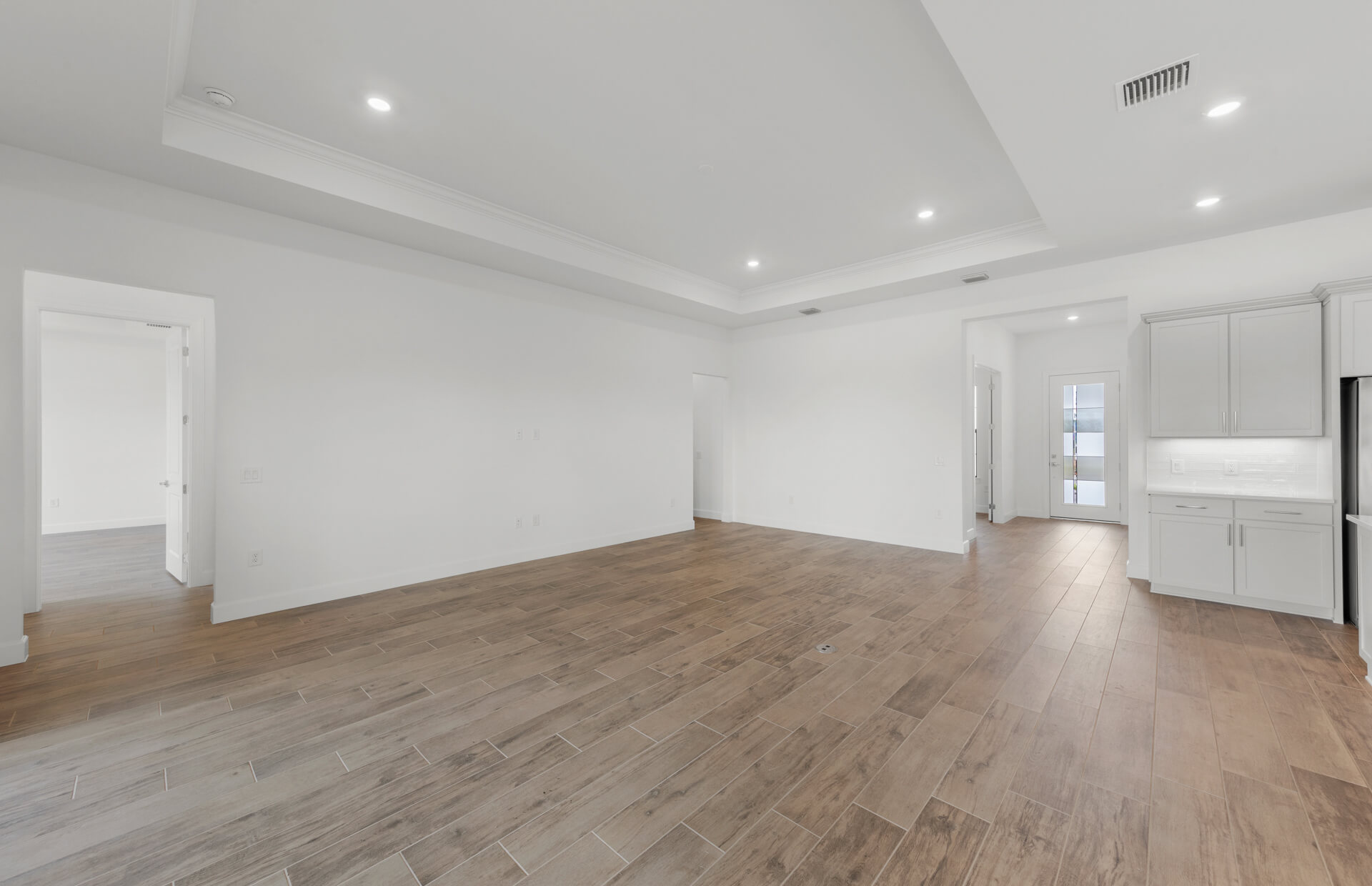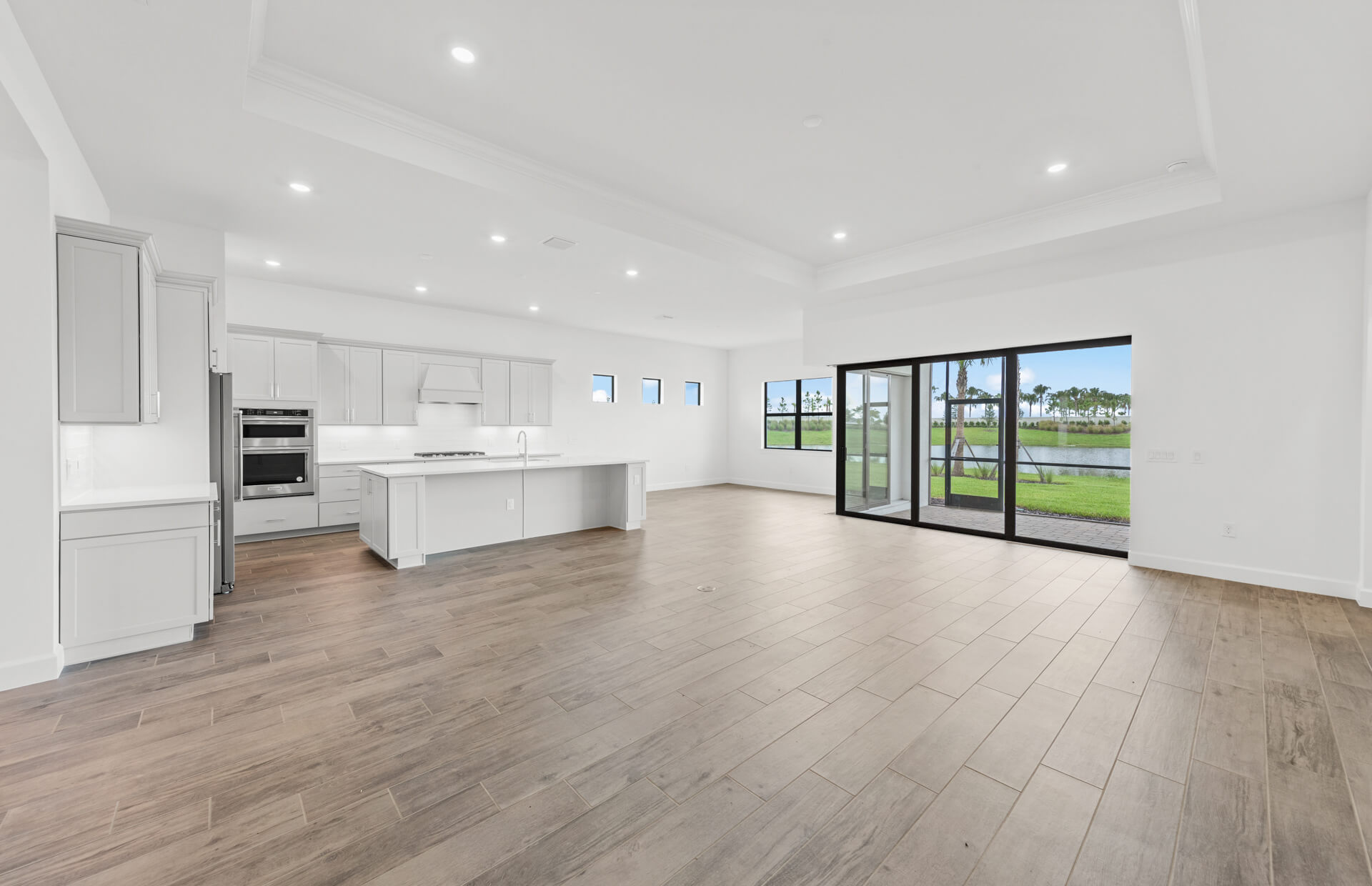 The Stellar: a masterpiece of design, where entertaining and everyday living converge in perfect harmony. The chef-inspired kitchen seamlessly flows into the expansive gathering room, dining area, and inviting covered lanai, creating an ideal setting for memorable gatherings. Private retreats, like the versatile flex room and the luxurious Owner’s Suite with its palatial walk-in closet, offer serene moments of respite. A dedicated bay within the extended garage provides ample space for a golf cart or additional storage, catering to both leisure and practicality.