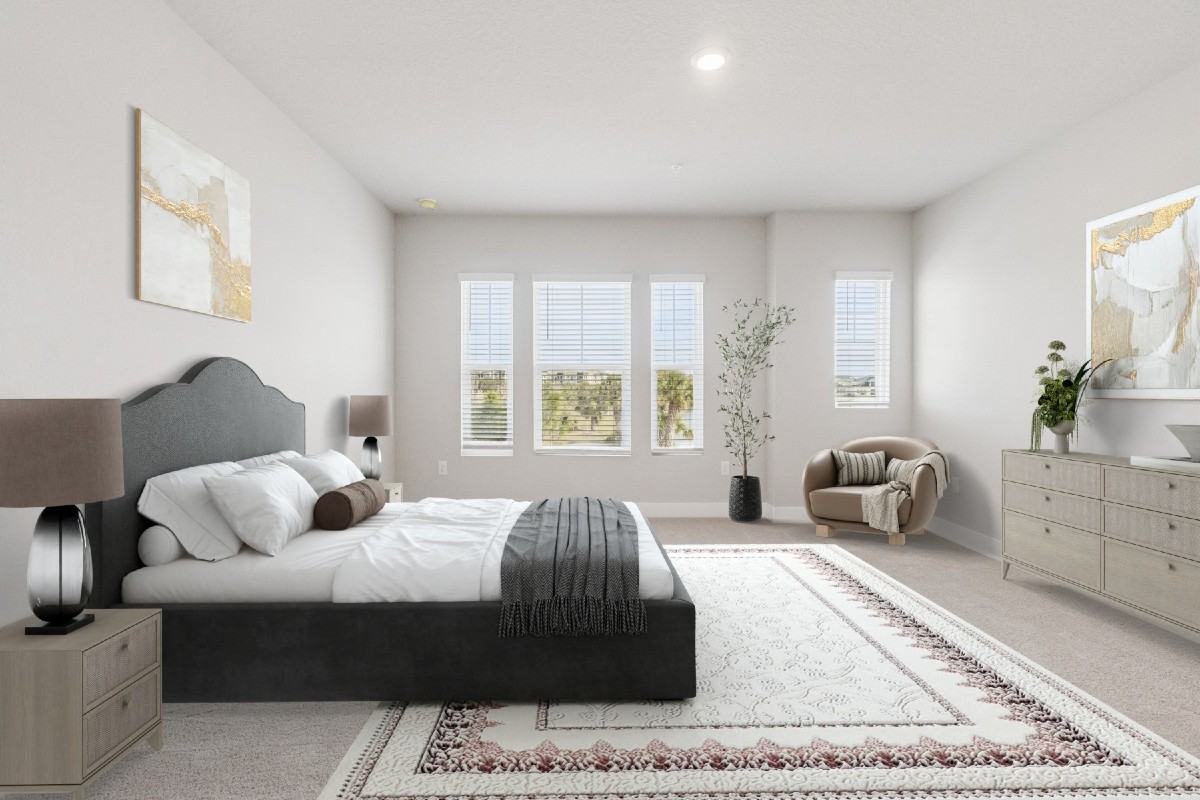 Throughout the home, premium finishes such as durable RevWood flooring in the main living areas, tile in the bathrooms, and impact-rated windows offer style, durability, and protection suited to Florida living.