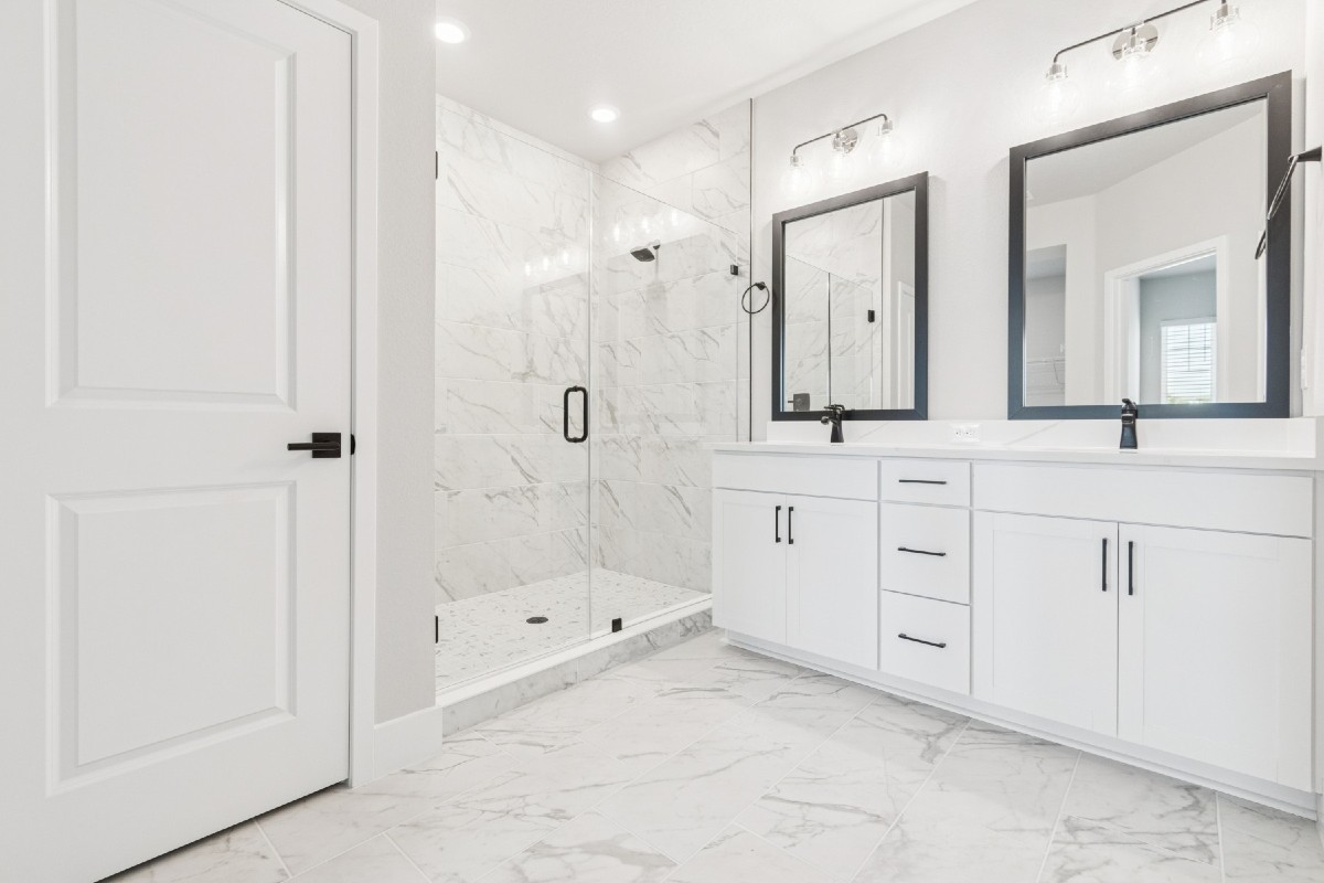 Upstairs, the private owner’s retreat provides a peaceful haven, complete with a generously sized bedroom and a luxurious en suite bath. Highlights include a super shower with full tile surround, dual quartz vanities, upgraded tile flooring, and a large walk-in closet. This level also includes two secondary bedrooms, a full guest bathroom, a flexible loft space ideal for a home office or media area, and a laundry room for added convenience.