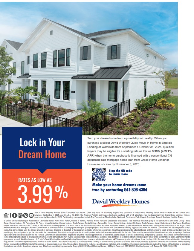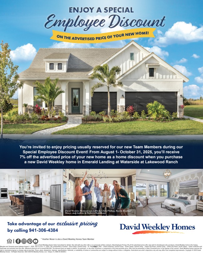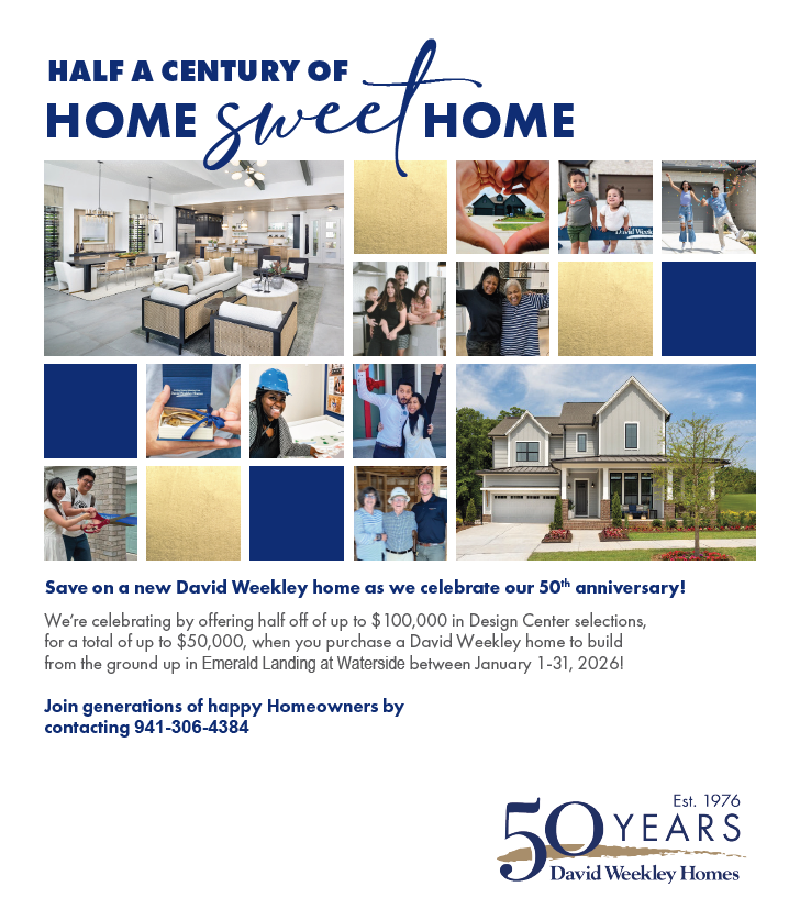 Welcome to Emerald Landing at Waterside, where David Weekley Homes, a distinguished builder since 1976, brings its renowned craftsmanship to Lakewood Ranch. Our community offers a variety of living options, from three-story city homes and two-story townhomes to single-family residences, each featuring open-concept floor plans and modern finishes.